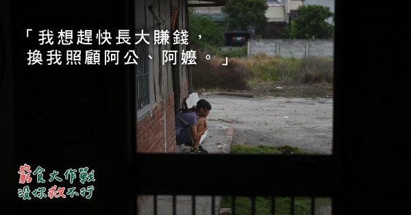 離開前,我們和小涵聊了一下天,她說阿公、阿嬤很愛她,因為她正在發育,常會肚子餓、吃不飽,阿公、阿嬤總為了買她想吃的東西,就捨棄自己的東西不買,所以她想趕快賺錢,幫阿公、阿嬤買些好的、他們需要的東西給他們用。「以後我有自己的房子,也會把他們接過來住,自己照顧他們比較放心」孩子信誓旦旦地說著,談到阿公、阿嬤的年紀與身體,她說「有時候會擔心他們,但也不能擔心太久,這樣(日子)也沒辦法持續下去」雖是笑著回答,她的眼神卻有著藏不住地擔憂,接著是一陣深遠的沉默。