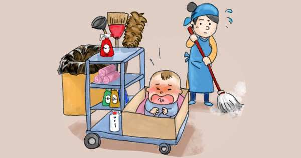 就讀小一的大寶,在弟弟出生後歷經多次搬家,曾住在管線外露、地板突出破裂的地方,母子三人還曾共食一碗麵;大寶即便肚子餓也甚少吵鬧,晚上跟著媽媽到雇主家工作,平時也幫忙照顧弟弟。