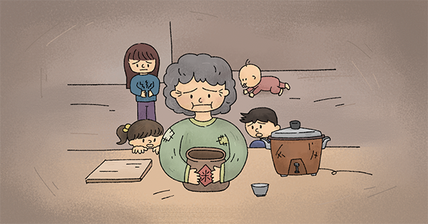 祥祥媽媽出獄回家後,又意外面臨媽媽離家出走,帶走了家裏所有的積蓄和孩子們的補助金。外婆因此陷入了經濟困境,無法保證孩子們的食物供應,感到十分不安與絕望。直到孩子們跟外婆說:「外婆,我肚子好餓,我想吃飯!」傷心的外婆才撇下自尊跟社工哭訴,說自己沒有錢養孩子了…