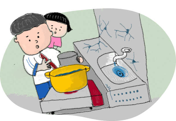 一家三口省吃儉用,不插電的空冰箱,裡面各式的醬料包和白麵條拌一拌就是孩子們的一餐,到即期品店撿便宜是他們的生活小確幸,髒髒舊舊的枕頭棉被是一家人睡前最歡樂的天地,兄妹倆每天待在這十坪大的小套房裡,懂事地幫忙做各種大小家事。他們耐心等待媽媽帶著「豐盛」的菜尾回家,窩在媽媽身邊吃飯,是他們一整天最幸福的時刻。