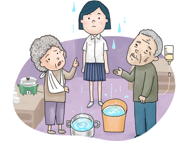 多年來家中生計全靠阿嬤做成衣工作維持,去年她出了車禍,無法行動,工作被迫暫停。雖然阿嬤心急想快快復工,但阿公要她好好休養,小涵也每天主動幫阿嬤擦澡、換藥,一家人心想「沒錢,就過得更節儉一點吧。」這家人樂天知命的態度與互相支持的情感,是他們共度甘苦生活的最大力量。